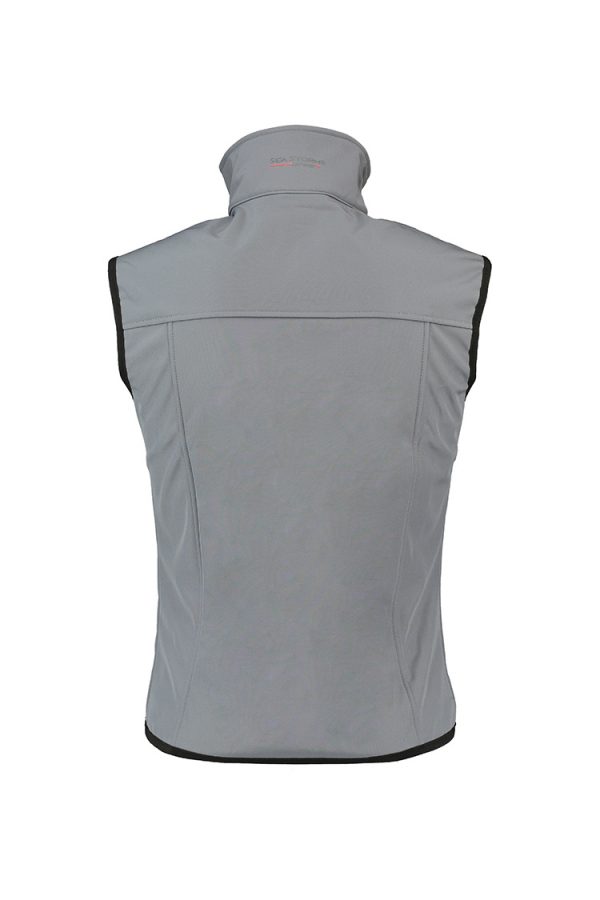 Gilè termico, traspirante ed impermeabile, due tasche laterali con cerniere impermeabile, cerniera anteriore impermeabile con flap di protezione interna, collo sagomato, bordature in Lycra.