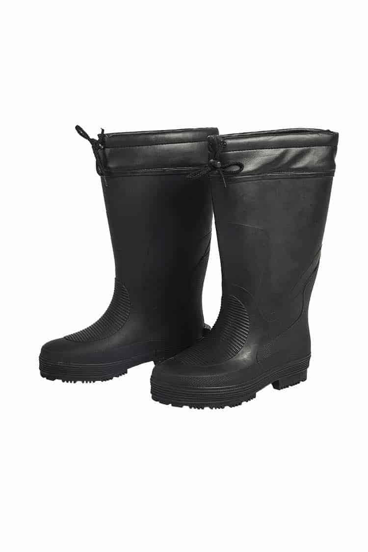 Stivale in puro lattice di gomma, imbottitura interna isotermica estraibile con soletta esterna in feltro, chiusura all’estremità superiore con cordoncino, fodera interna in Nylon anti muffa, suola calandrata stondata lateralmente, rinforzi nei punti di maggior usura.