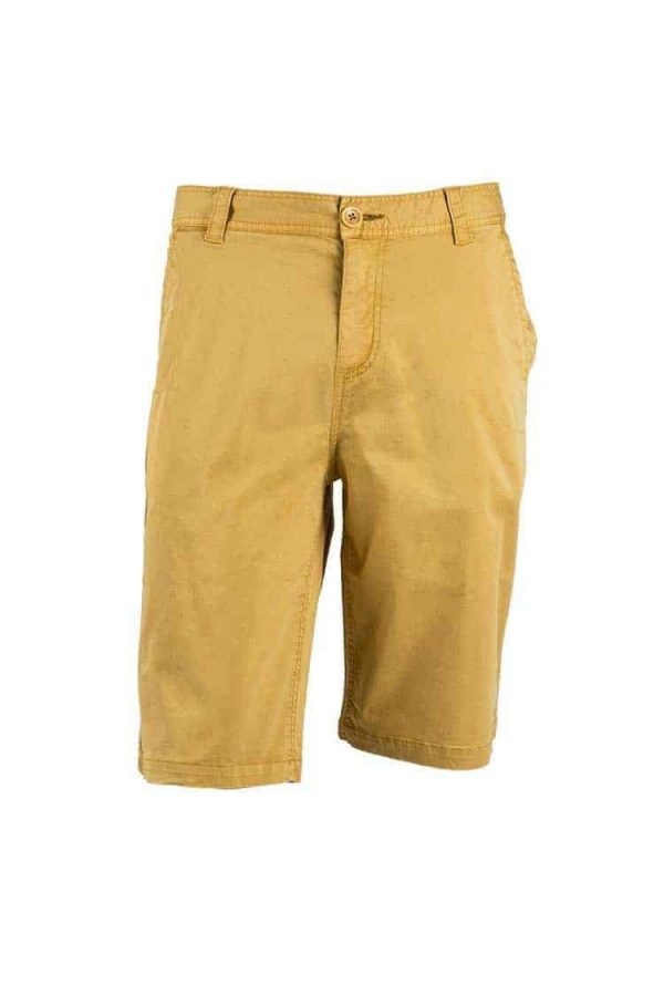 Shorts elasticizzato, realizzato in cotone e spandex per dare la massima liberta nei movimenti, due tasche anteriori a filo e due posteriori con bottone di chiusura, passanti per cintura, chiusura anteriore con cerniera e bottone.