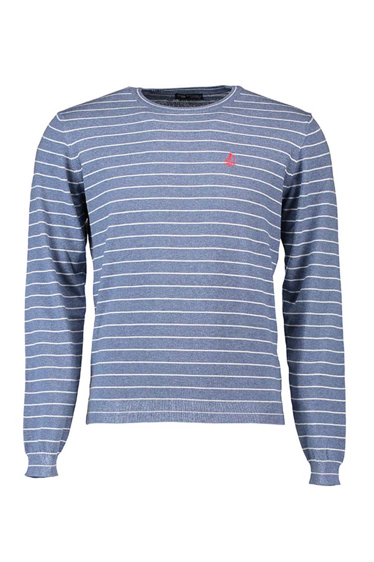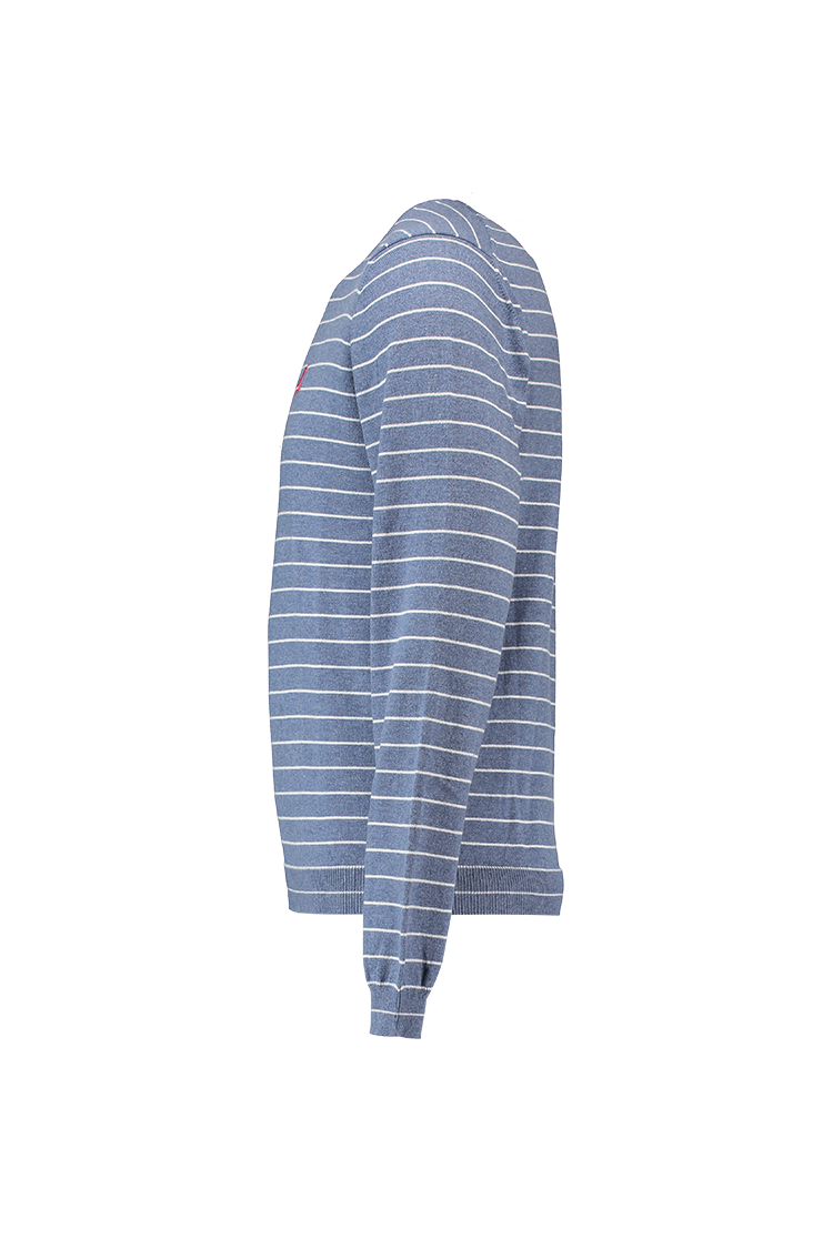 Maglia girocollo manica lunga in 100% cotone, vestibilità regular, rigata fine, bordatura antisudore all’interno del collo, logo SEA STORM lato cuore.